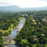 Aviones hidrantes por aire y bomberos por tierra impiden que las llamas lleguen a propiedades atrás de los Jardines de Yaya, propiedades de familia Clavero en la zona del Pungo en La Cumbre. También trabaja en la zona la policía.