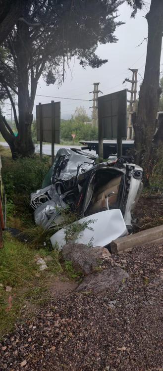 Volcó e impactó contra los pinos de la entrada de La Cumbre